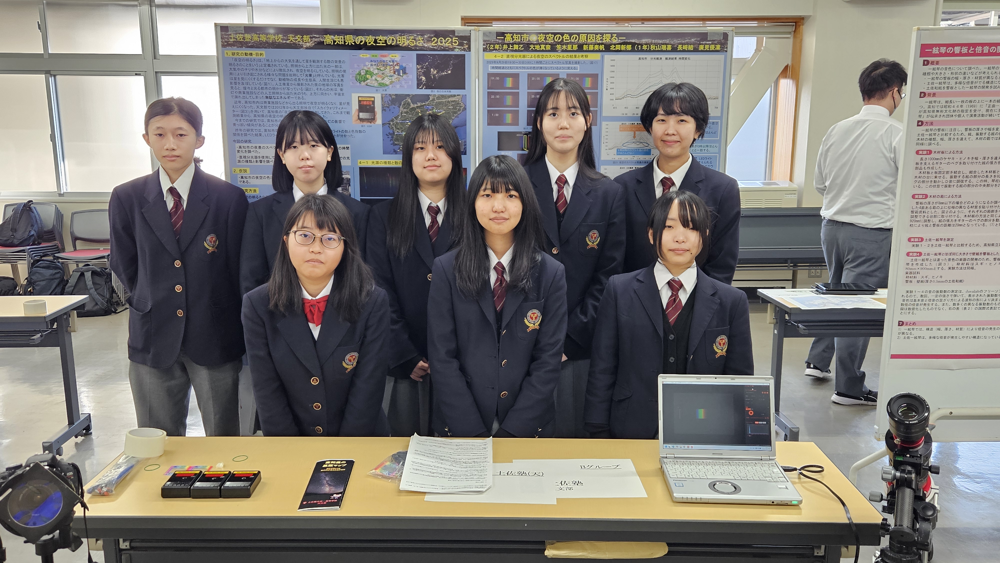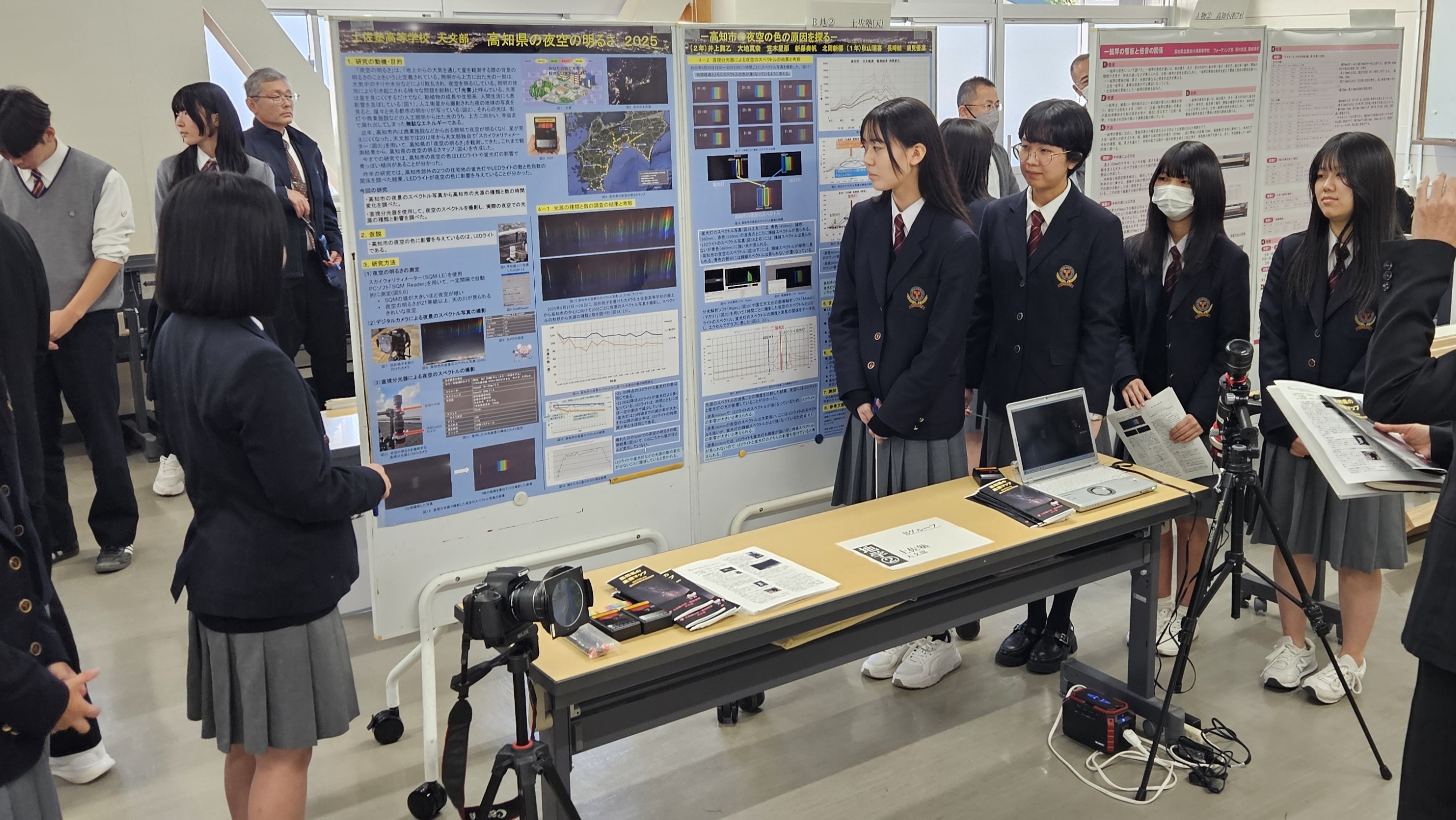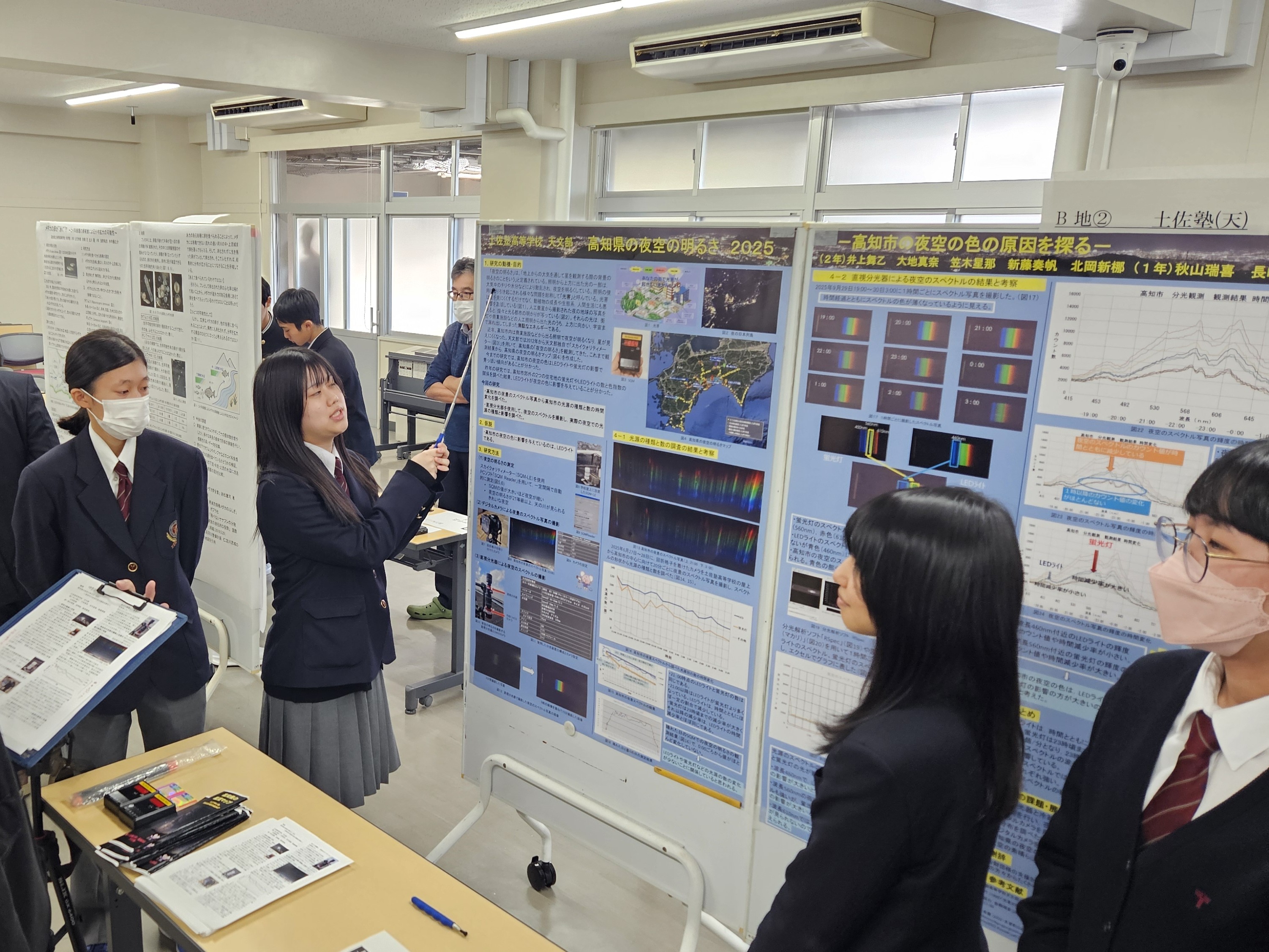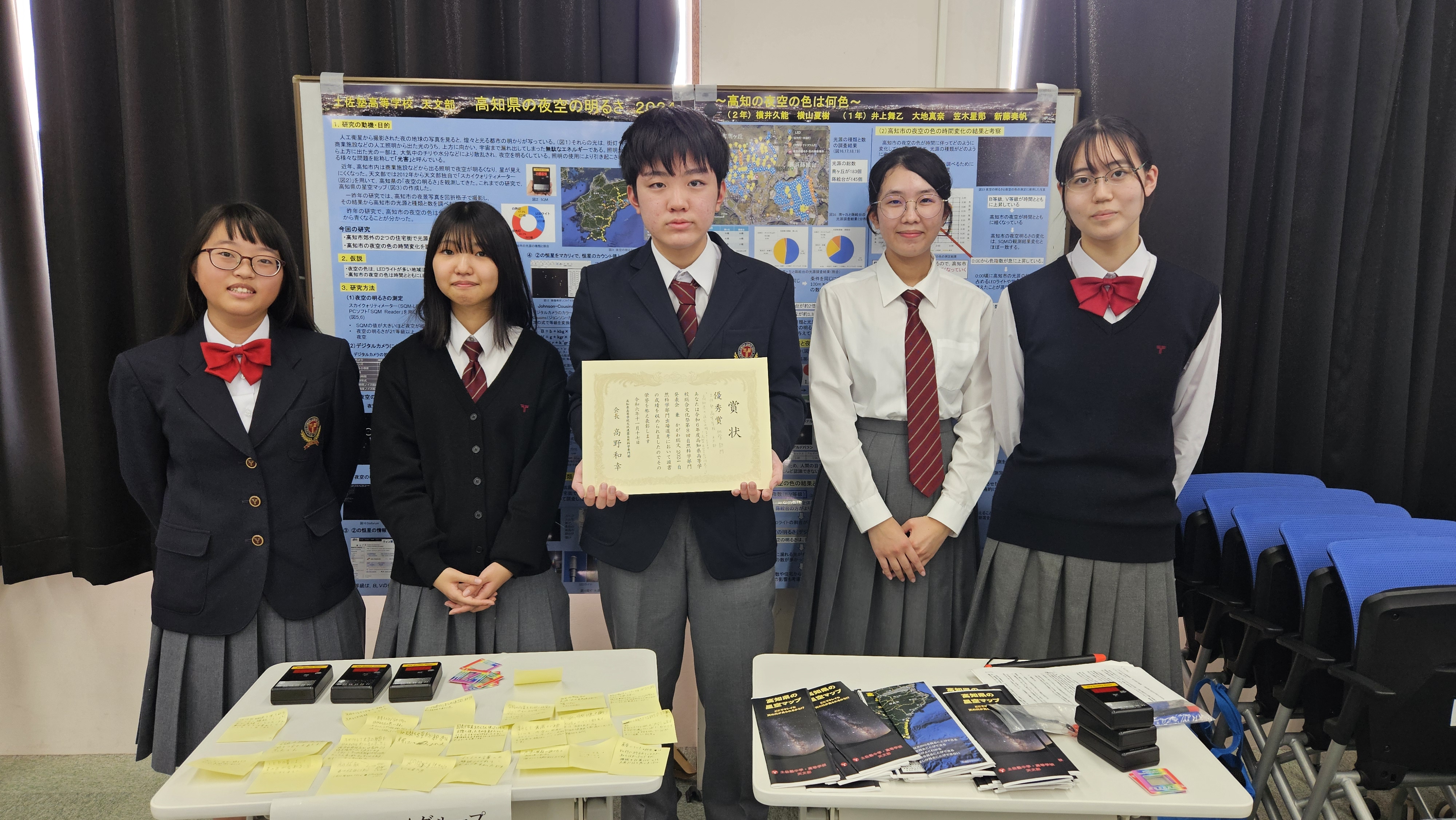 天文部は、11月24日に高知大学朝倉キャンパスで開催された高知県高等学校総合文化祭・自然科学部門発表会において、研究題目「高知県の夜空の明るさ2025 ー 高知市の夜空の色の原因を探る ー」でポスター発表を行い、地学部門で優秀賞を受賞しました。